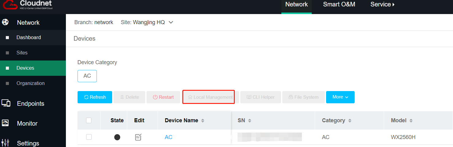 The local management function of the Oasis platform allows you to jump to the local page of the device, as follows: