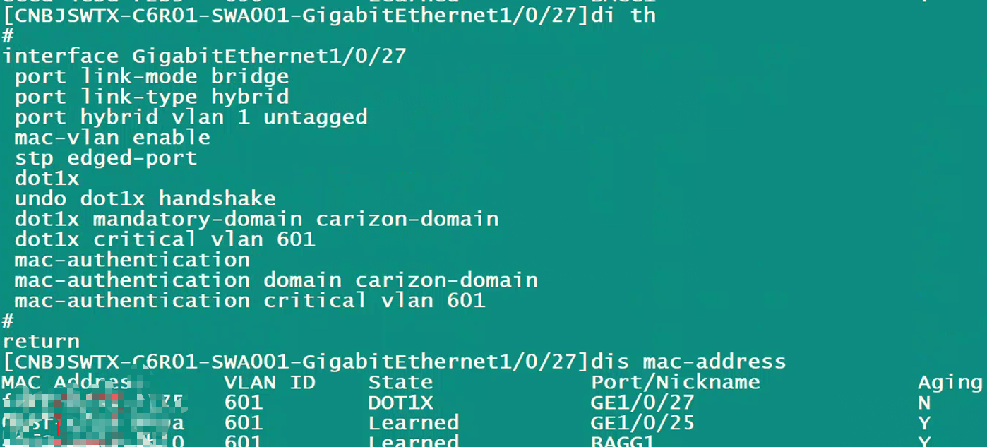 After product line positioning: Adding 1x critical VLAN requires either mac-vlan enable (needs to be configured as a hybrid port) or port-based mode. For scenarios requiring both MAC and 1x authentication simultaneously, the solution is to switch to a hybrid port.