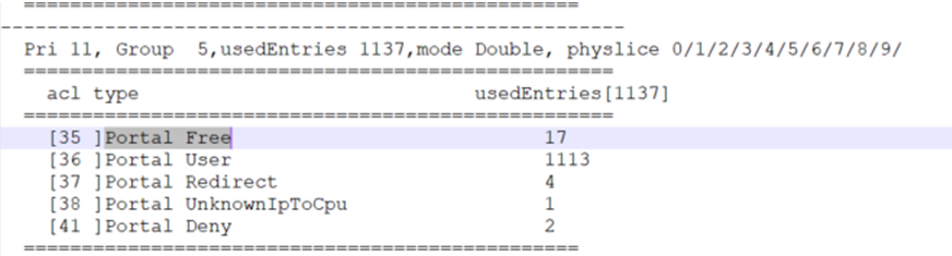 The number of portal free rules used on-site is not large. The current main ACL occupancy is still portal user, which has indeed approached the specifications limit.
