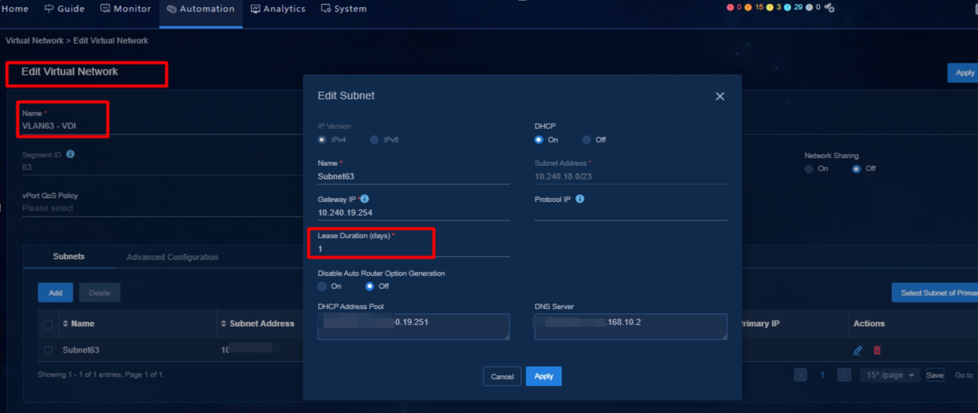 The lease configured on the virtual link layer network only affects the behavior on the virtual machine side: for example, if set to 365 days, the virtual machine will send a renewal once every 182.5 days. As long as the virtual machine normally sends renewal packets with the correct format and the DHCP controller (CTL) switch is still on, the renewal will succeed.