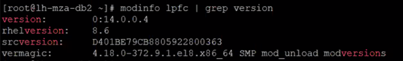 Check the FC HBA driver version: modinfo lpfc | grep version