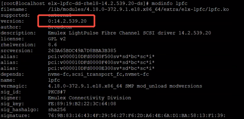 View all output: modinfo lpfc