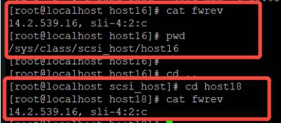 Check the current firmware version of the FC HBA card with cat /sys/class/scsi_host/host*/fwrev. This allows you to check whether the firmware and driver are compatible and whether it is the recommended version.