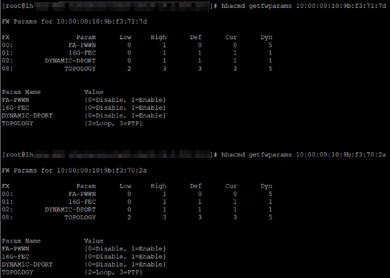 Before executing the commands, hardware replacement checks for the FC HBA Riser card, as well as link-level and storage configuration checks, had been performed.