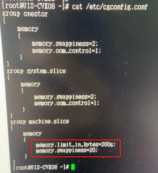 You can check the /etc/cgconfig.conf file to obtain the memory.limit_in_bytes parameter, which is the memory limit of the cgroup.