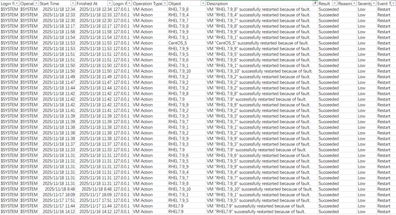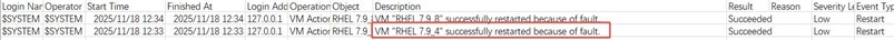 Take VM “RHEL 7.9_4” as an example, 2025-11-18 12:33 , UIS web report this VM